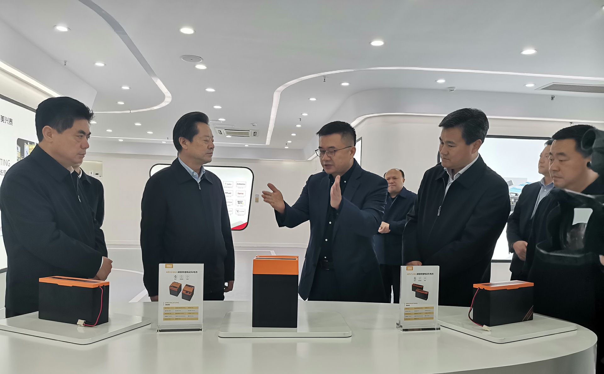 在董事长杨昌军的带领下,州委书记虢正贵一行参观了半岛·网站在线官网-半岛(中国)产品展示厅以及泰和美新能源电芯自动化生产线,详细了解了泰和美电动车电池产品市场规模及市场前景。